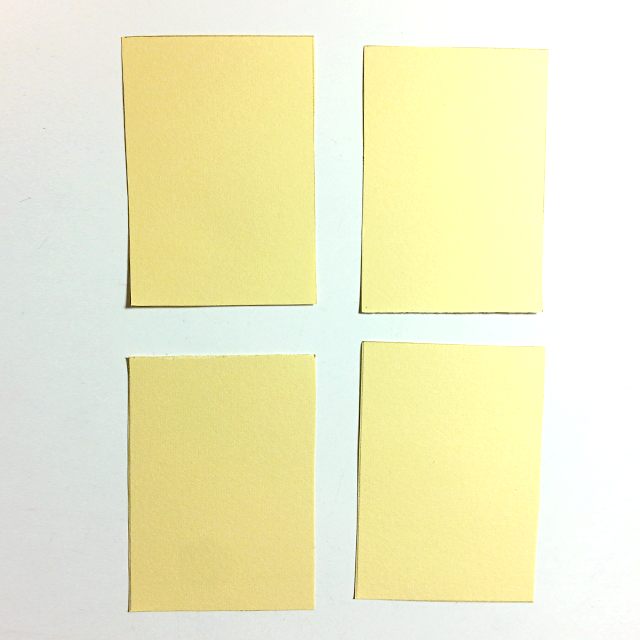 ①4㎝×6㎝の画用紙を4枚用意します。多いほど厚い本が作れます!